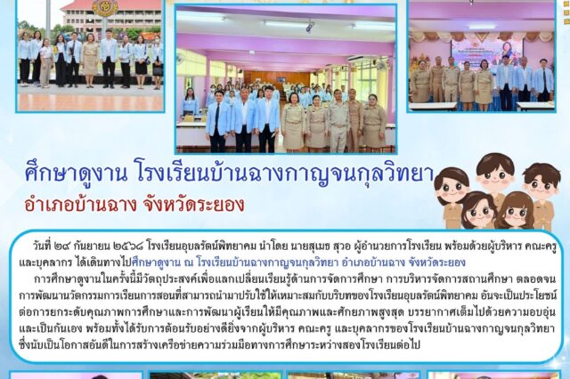 วันที่ ๒๙ กันยายน ๒๕๖๘ โรงเรียนอุบลรัตน์พิทยาคม นำโดย นายสุเมธ สุวอ ผู้อำนวยการโรงเรียน พร้อมด้วยผู้บริหาร คณะครู และบุคลากร ได้เดินทางไปศึกษาดูงาน ณ โรงเรียนบ้านฉางกาญจนกุลวิทยา อำเภอบ้านฉาง จังหวัดระยอง การศึกษาดูงานในครั้งนี้มีวัตถุประสงค์เพื่อแลกเปลี่ยนเรียนรู้ด้านการจัดการศึกษา การบริหารจัดการสถานศึกษา…