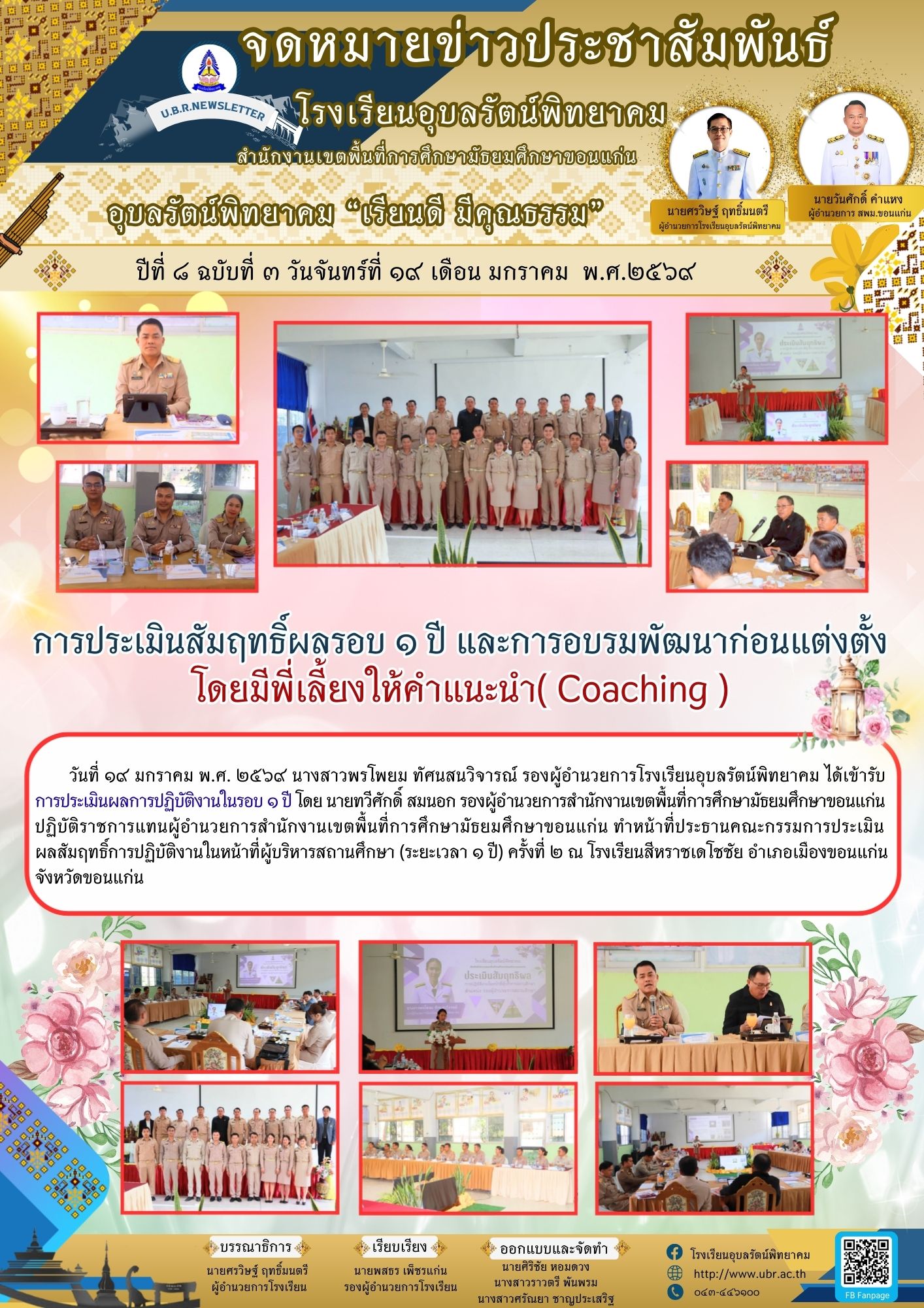 วันที่ ๑๙ มกราคม พ.ศ. ๒๕๖๙ นางสาวพรโพยม ทัศนสนวิจารณ์ รองผู้อำนวยการโรงเรียนอุบลรัตน์พิทยาคม ได้เข้ารับการประเมินผลการปฏิบัติงานในรอบ ๑ ปีโดย นายทวีศักดิ์ สมนอก รองผู้อำนวยการสำนักงานเขตพื้นที่การศึกษามัธยมศึกษาขอนแก่น ปฏิบัติราชการแทนผู้อำนวยการสำนักงานเขตพื้นที่การศึกษามัธยมศึกษาขอนแก่น ทำหน้าที่ประธานคณะกรรมการประเมินผลสัมฤทธิ์การปฏิบัติงานในหน้าที่ผู้บริหารสถานศึกษา (ระยะเวลา ๑ ปี) ครั้งที่ ๒ ณ โรงเรียนสีหราชเดโชชัย อำเภอเมืองขอนแก่น จังหวัดขอนแก่น